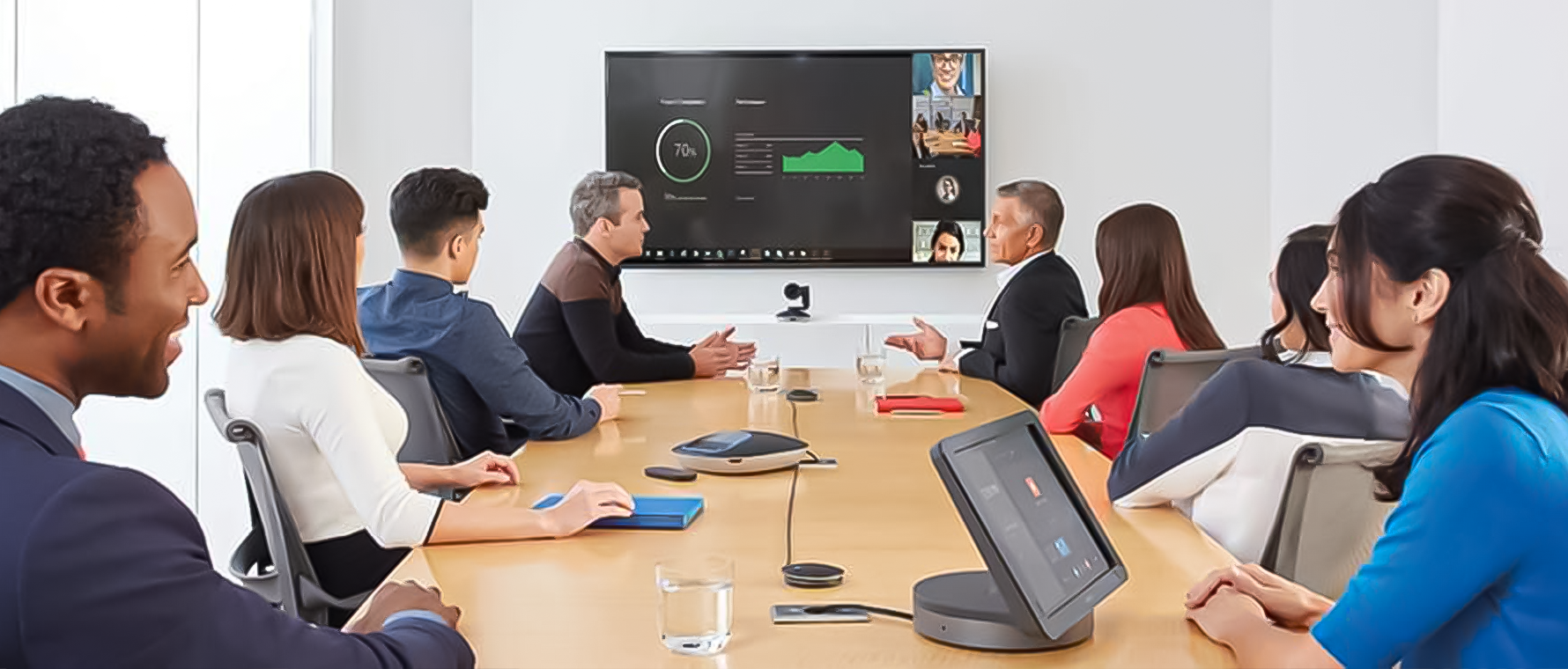 - High-quality video/audio endpoints (Poly, Logitech, Cisco)
